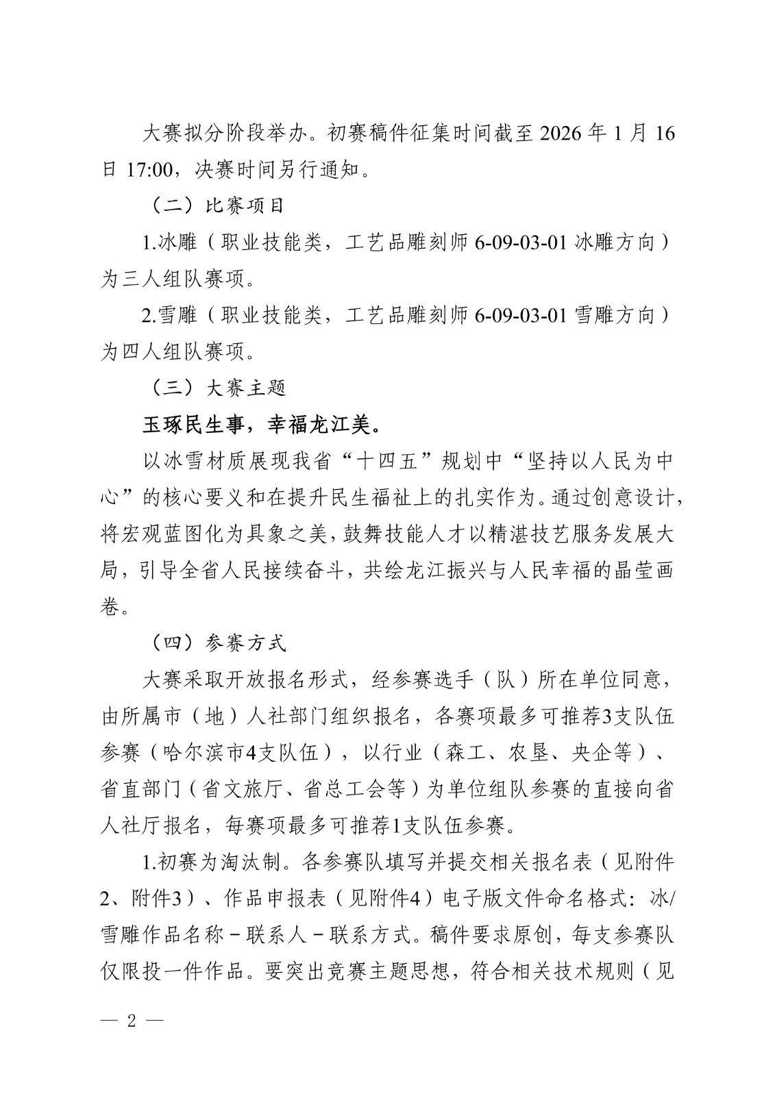 省第二届冰雕雪雕大赛附件
